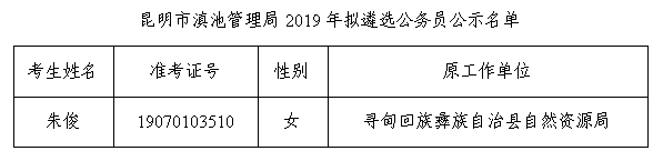 昆明市滇池管理局2019年擬遴選公務(wù)員人選公示