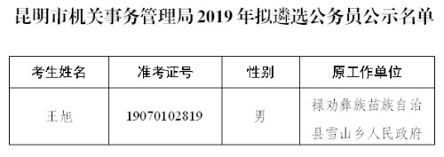 昆明市機(jī)關(guān)事務(wù)管理局 2019年擬遴選公務(wù)員人選公示
