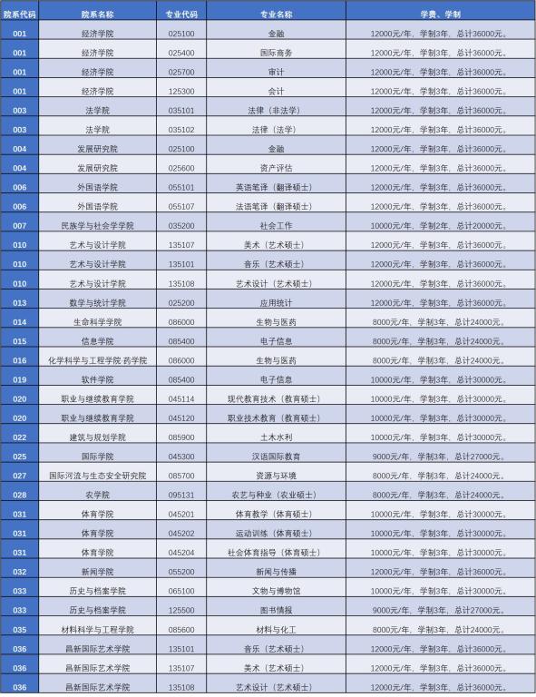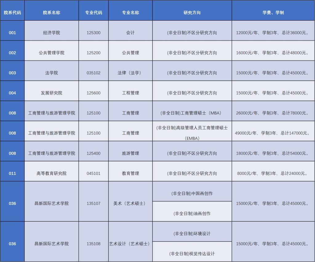 3.非全日制碩士研究生學(xué)費(fèi)見(jiàn)下表,具體收費(fèi)標(biāo)準(zhǔn)以省級(jí)價(jià)格主管部門(mén)核定和備案的為準(zhǔn):