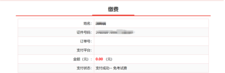 減免申請(qǐng)審核通過(guò)后,報(bào)名系統(tǒng)“支付狀態(tài)”欄會(huì)顯示“支付成功—免考試費(fèi)”提示(如圖示),已經(jīng)繳納報(bào)名費(fèi)的考生將由收費(fèi)平臺(tái)在確認(rèn)工作結(jié)束后進(jìn)行退費(fèi),還未繳費(fèi)的考生可不再繳費(fèi)。如果未顯示圖示界面的考生,建議先支付報(bào)名費(fèi),防止影響考試。