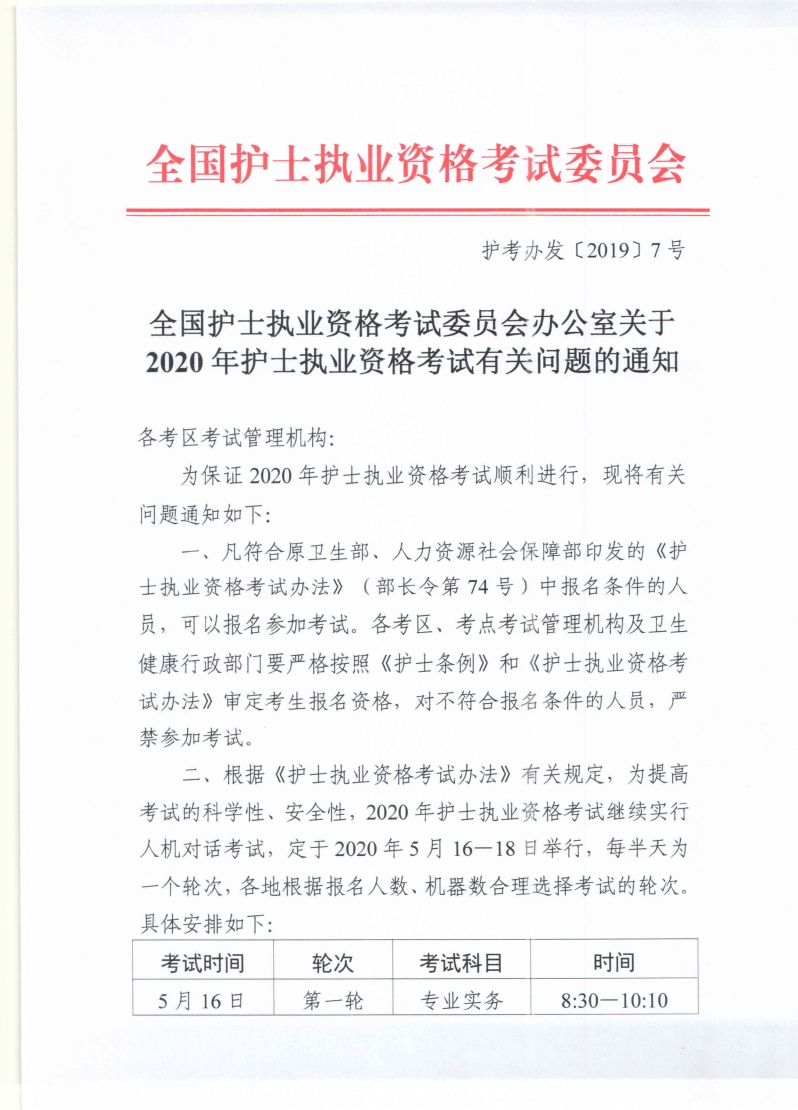 關(guān)于2020年護士執(zhí)業(yè)資格考試有關(guān)問題的通知