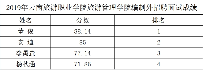 云南旅游職業(yè)學(xué)院旅游管理學(xué)院編制外人員招聘面試成績的公示