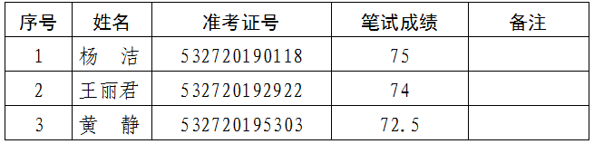 根據(jù)《普洱市婦女聯(lián)合會2019年公開遴選參照公務(wù)員法管理單位工作人員公告》(第1號),普洱市婦女聯(lián)合會于2019年12月7日開展了“綜合管理崗職位(職位代碼B002001)”公開遴選的筆試工作。現(xiàn)將有關(guān)事項公告如下: