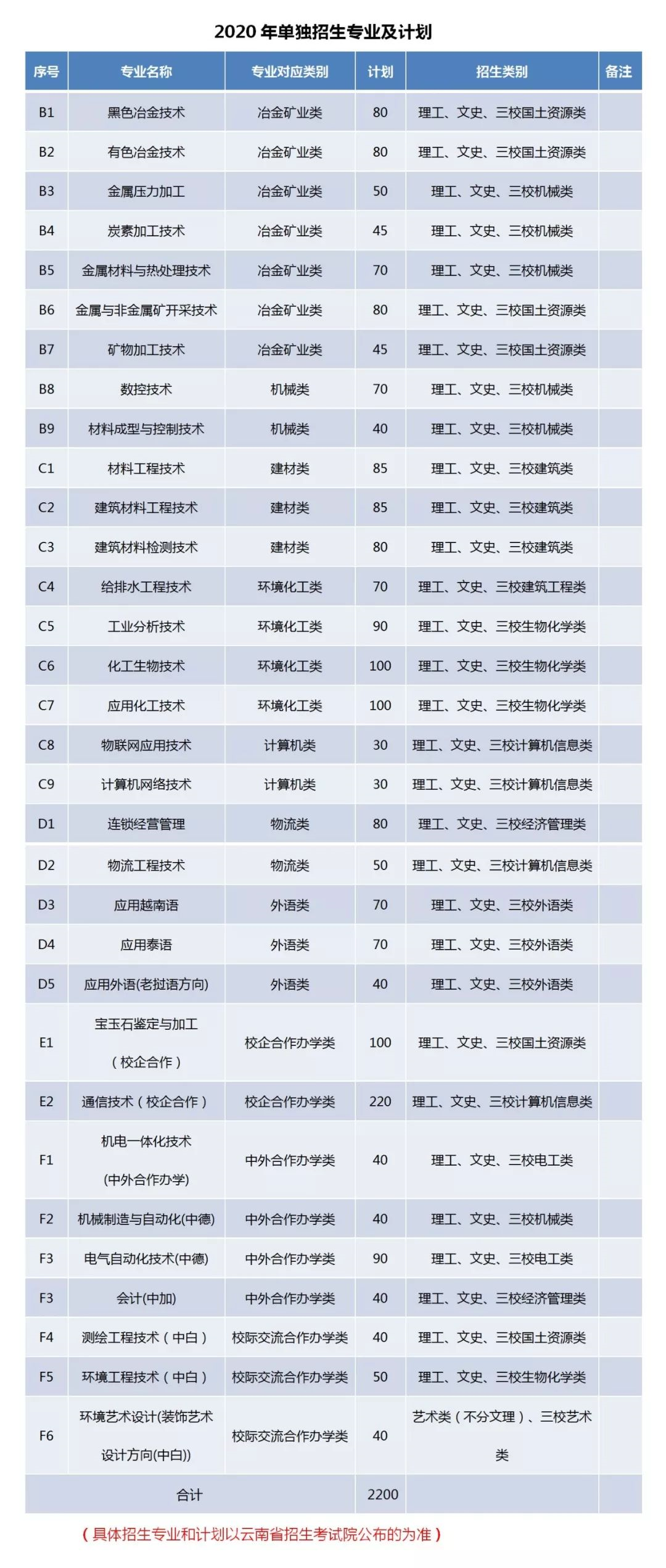 昆明冶金高等專科學(xué)校2020年單獨(dú)招生簡(jiǎn)章