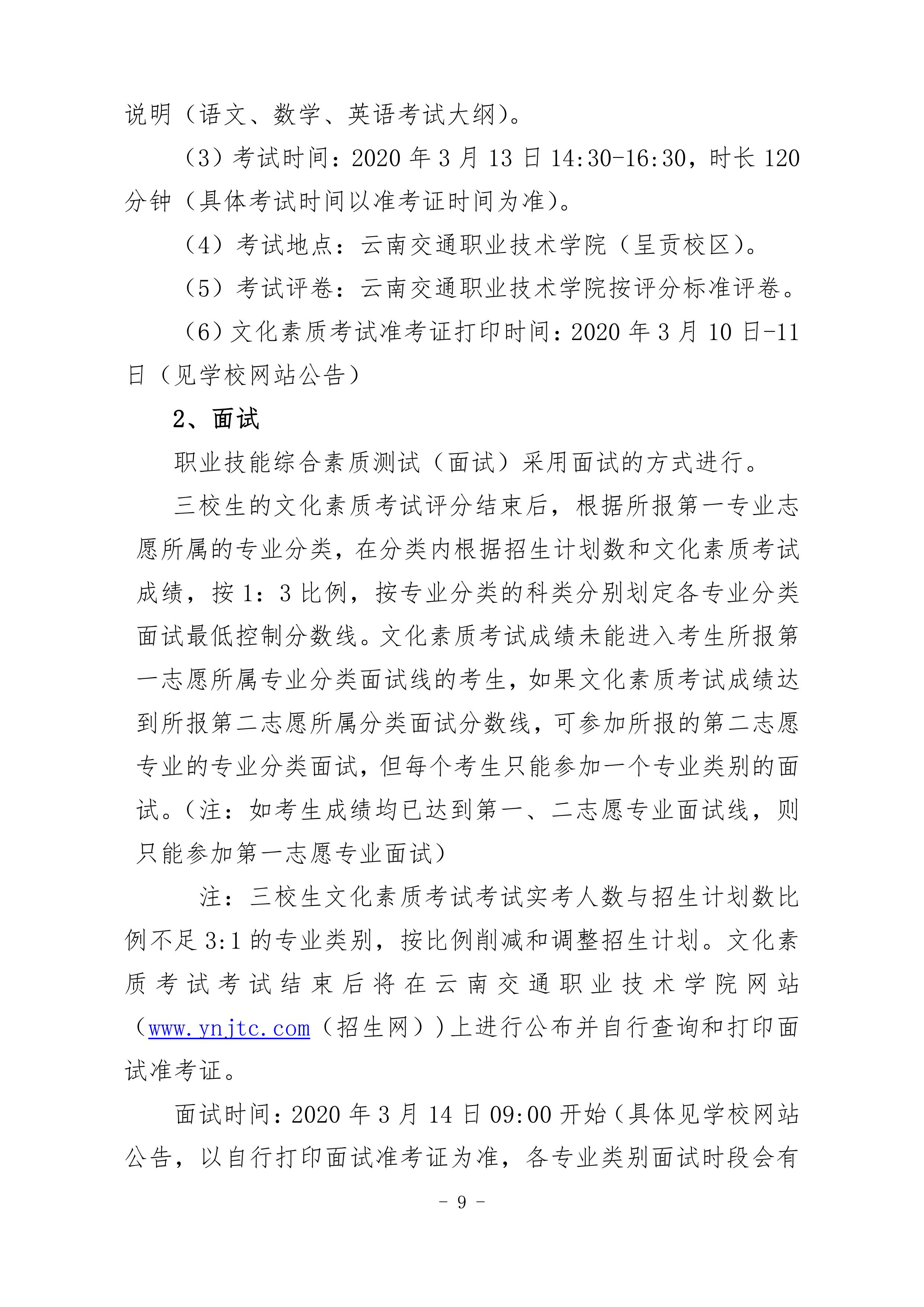 云南交通職業(yè)技術(shù)學院2020年單獨招生單程