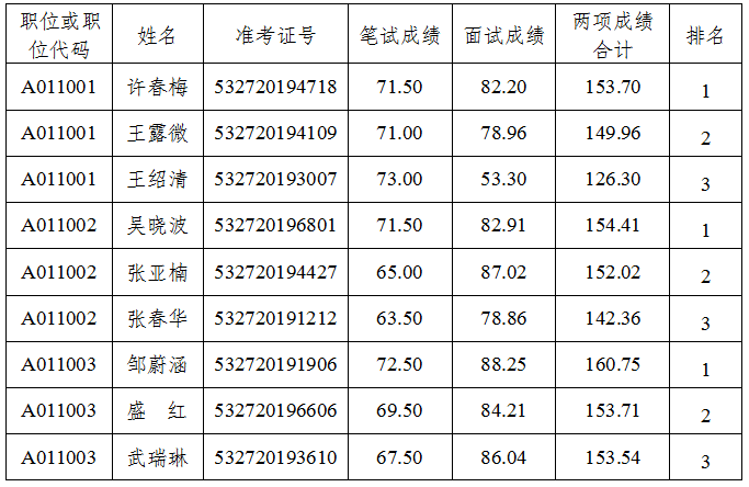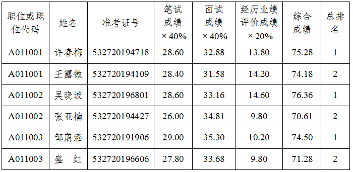 注:若考生對本人成績有異議,可于2020年1月20日前向普洱市審計(jì)局提出查分申請。由普洱市審計(jì)局委托受邀對本次遴選工作進(jìn)行監(jiān)督的人大代表、政協(xié)委員進(jìn)行查分,并將結(jié)果告知。