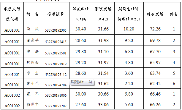 注:若考生對本人成績有異議,可于2020年2月17日前向中共普洱市委辦公室提出查分申請。由中共普洱市委辦公室委托受邀對本次遴選工作進(jìn)行監(jiān)督的市紀(jì)委市監(jiān)委駐市委辦公室紀(jì)檢監(jiān)察組組長進(jìn)行查分,并將結(jié)果告知。