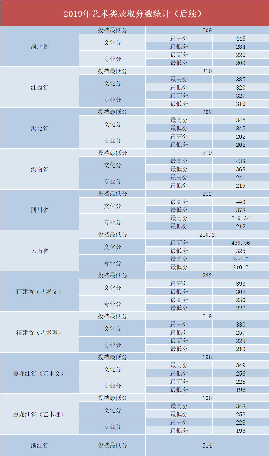 云南大學(xué)旅游文化學(xué)院2019年藝術(shù)類錄取分?jǐn)?shù)統(tǒng)計(jì)(后續(xù))