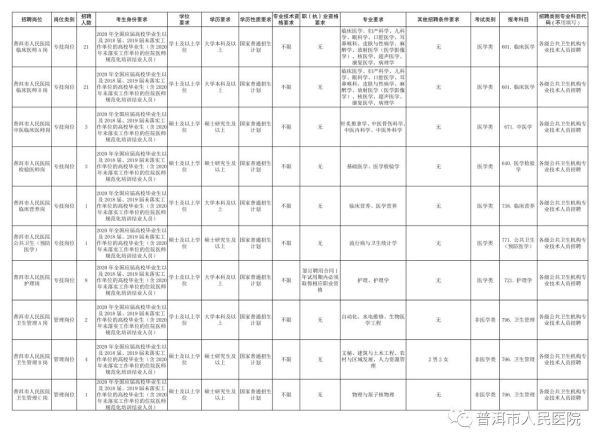 附件:2020年普洱市人民醫(yī)院面向全國開展專項招聘優(yōu)秀高校畢業(yè)生招聘崗位計劃表