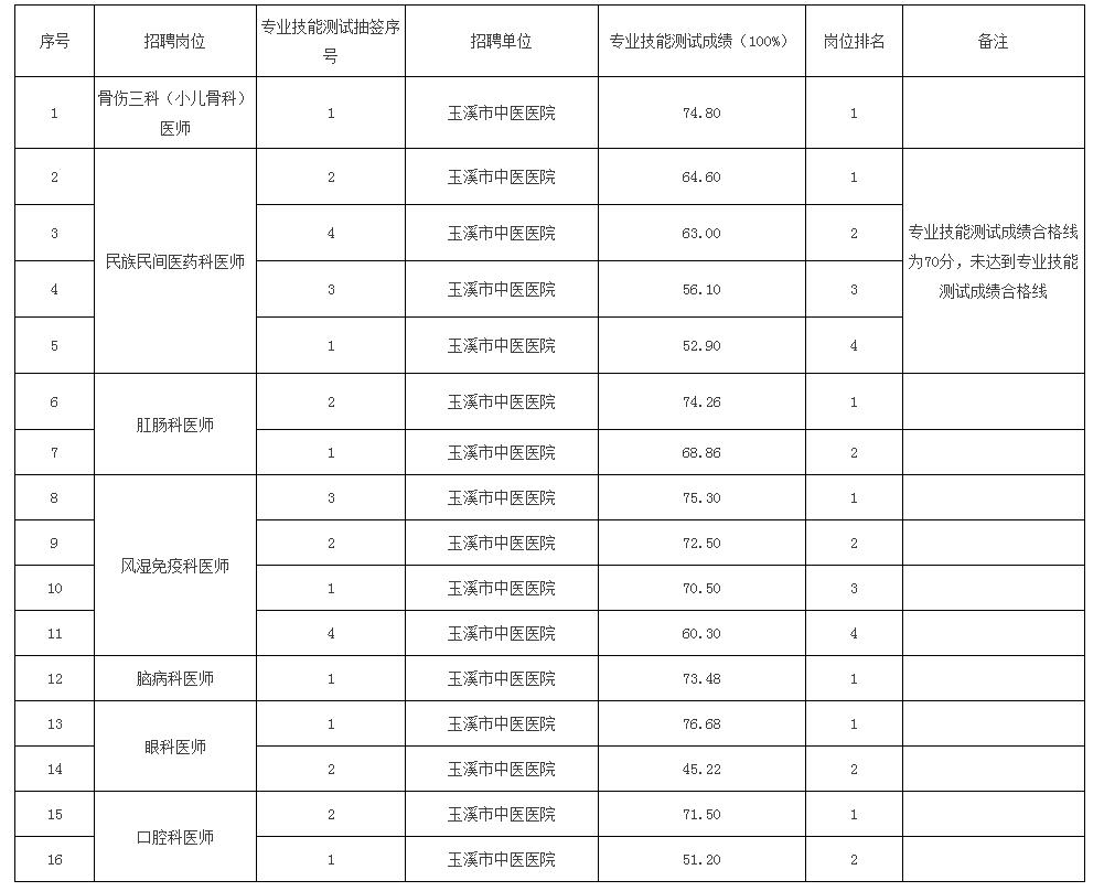 玉溪市中醫(yī)醫(yī)院2020年提前招聘編制內工作人員專業(yè)技能測試成績公布