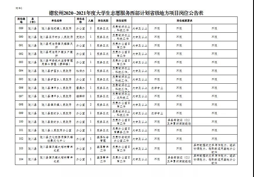 根據(jù)共青團中央 教育部 財政部 人力資源和社會保障部《關于印發(fā)<2020-2021年度大學生志愿服務西部計劃實施方案>的通知》(中青聯(lián)發(fā)〔2020〕6號)、云南省大學生志愿服務西部計劃項目管理辦公室《關于開展大學生志愿服務西部計劃相關工作的通知》等文件精神,現(xiàn)將德宏州2020-2021年度大學生志愿服務西部計劃省級地方項目志愿者招募工作有關事項公告如下。