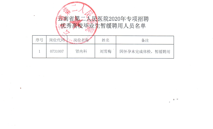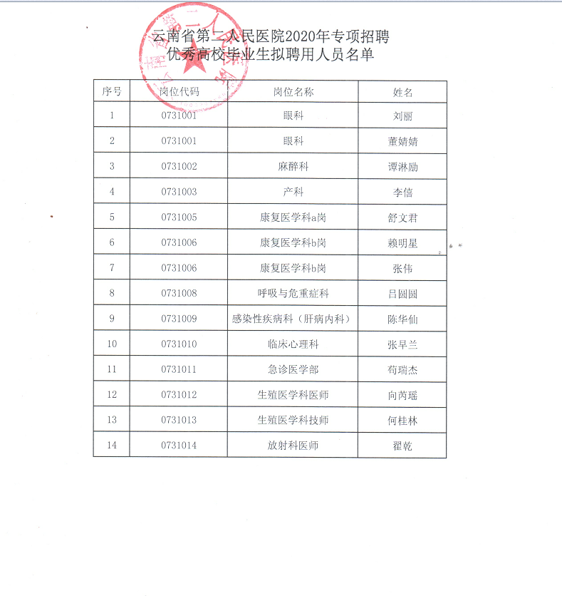云南省第二人民醫(yī)院2020年專項(xiàng)招聘 優(yōu)秀高校畢業(yè)生擬聘用人員公示