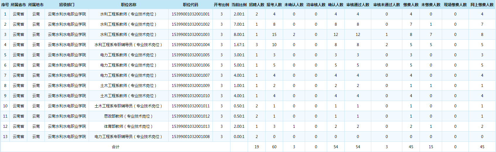 云南水利水電職業(yè)學院2020年事業(yè)單位招聘報名統(tǒng)計(截止7月1日13:00)