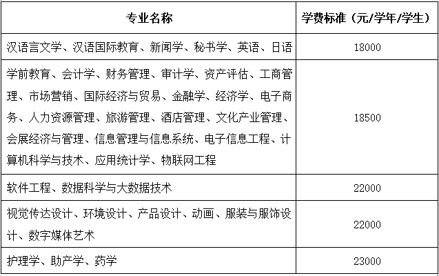 【普通類】漢語(yǔ)言文學(xué)、漢語(yǔ)國(guó)際教育、新聞學(xué)、秘書(shū)學(xué)、學(xué)前教育、英語(yǔ)、日語(yǔ)、會(huì)計(jì)學(xué)、財(cái)務(wù)管理、審計(jì)學(xué)、資產(chǎn)評(píng)估、工商管理、市場(chǎng)營(yíng)銷、國(guó)際經(jīng)濟(jì)與貿(mào)易、金融學(xué)、經(jīng)濟(jì)學(xué)、電子商務(wù)、人力資源管理、旅游管理、酒店管理、文化產(chǎn)業(yè)管理、會(huì)展經(jīng)濟(jì)與管理、信息管理與信息系統(tǒng)、電子信息工程、計(jì)算機(jī)科學(xué)與技術(shù)、應(yīng)用統(tǒng)計(jì)學(xué)、軟件工程、數(shù)據(jù)科學(xué)與大數(shù)據(jù)技術(shù)、物聯(lián)網(wǎng)工程、護(hù)理學(xué)、助產(chǎn)學(xué)、藥學(xué)。