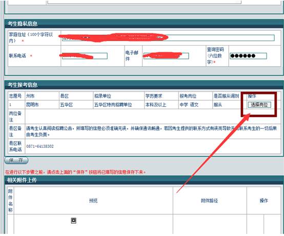 登錄系統(tǒng),進(jìn)入考生報(bào)名(如無(wú)權(quán)限,請(qǐng)聯(lián)系報(bào)考縣區(qū)取消審核后再更改)選擇崗位進(jìn)入崗位頁(yè)面,下拉選擇州市、縣區(qū)點(diǎn)擊檢索,選擇要變更的崗位后服從或不服從調(diào)劑點(diǎn)擊保存返回到考生報(bào)名頁(yè)面,再次點(diǎn)擊考生報(bào)名頁(yè)面保存按鈕(一定要點(diǎn)擊考生報(bào)名頁(yè)面保存按鈕,否則更改不成功)保存成功后,點(diǎn)擊考生報(bào)名信息查看,核對(duì)報(bào)名信息,核實(shí)無(wú)誤后則點(diǎn)擊考生報(bào)名頁(yè)面提交按鈕。