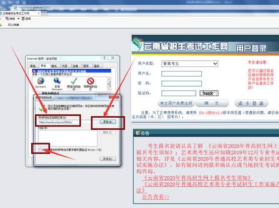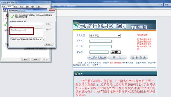 5、復(fù)制報(bào)名網(wǎng)址粘貼到添加輸入欄內(nèi)點(diǎn)擊添加(如果添加時(shí)提示:添加到該區(qū)域中的站點(diǎn)必須使用前綴https://,該前綴能確保連接的安全。則取消勾選對(duì)該區(qū)域中的所有站點(diǎn)要求服務(wù)器驗(yàn)證https)