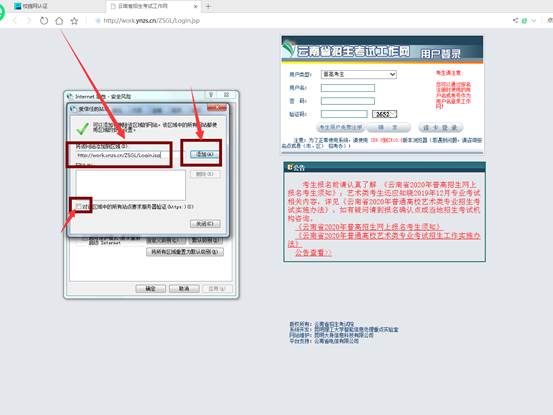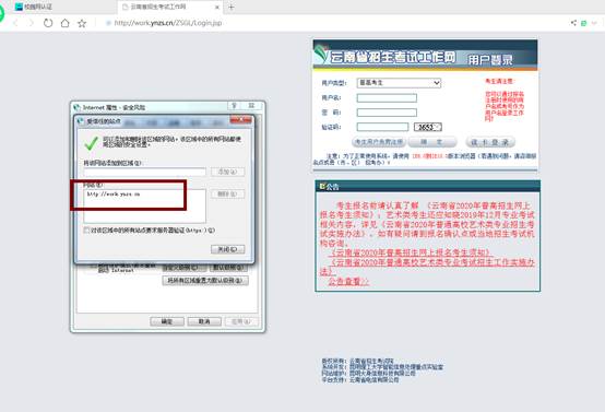 4、復(fù)制報(bào)名網(wǎng)址粘貼到添加輸入欄內(nèi)點(diǎn)擊添加(如果添加時(shí)提示:添加到該區(qū)域中的站點(diǎn)必須使用前綴https://,該前綴能確保連接的安全。則取消勾選對(duì)該區(qū)域中的所有站點(diǎn)要求服務(wù)器驗(yàn)證https)