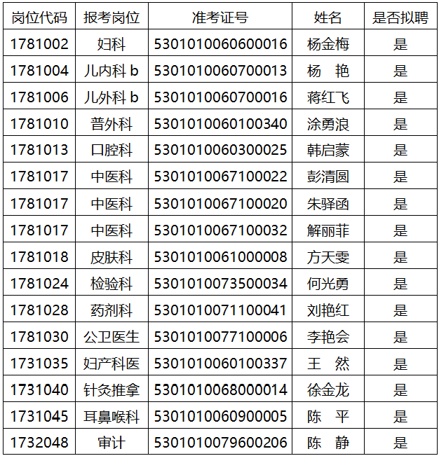 云南省婦幼保健院2020年專項(xiàng)招聘優(yōu)秀高校畢業(yè)生擬聘人員名單公示