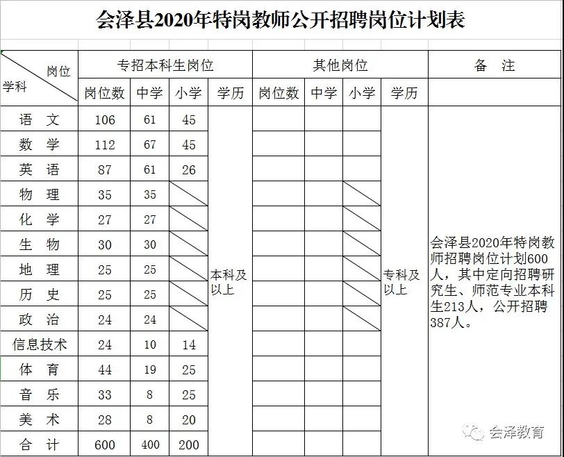 附件:會澤縣2020年特崗教師公開招聘崗位計(jì)劃表