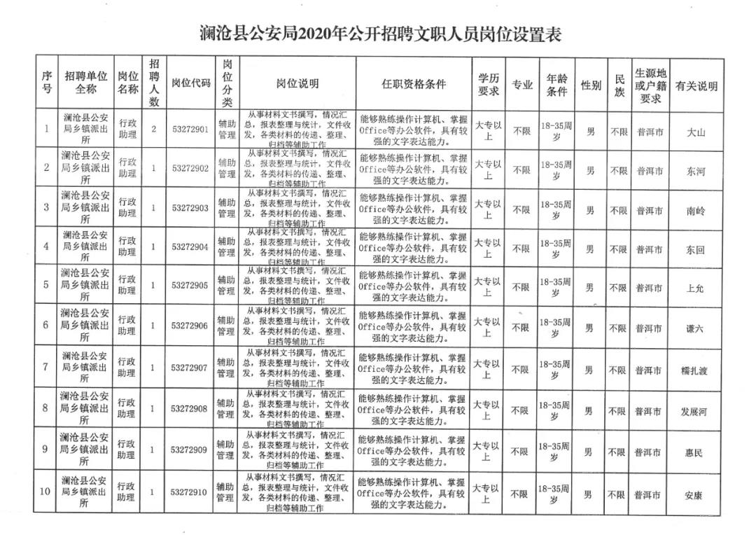 附件:1. 瀾滄縣公安局2020年招公開聘文職人員崗位設(shè)置表
