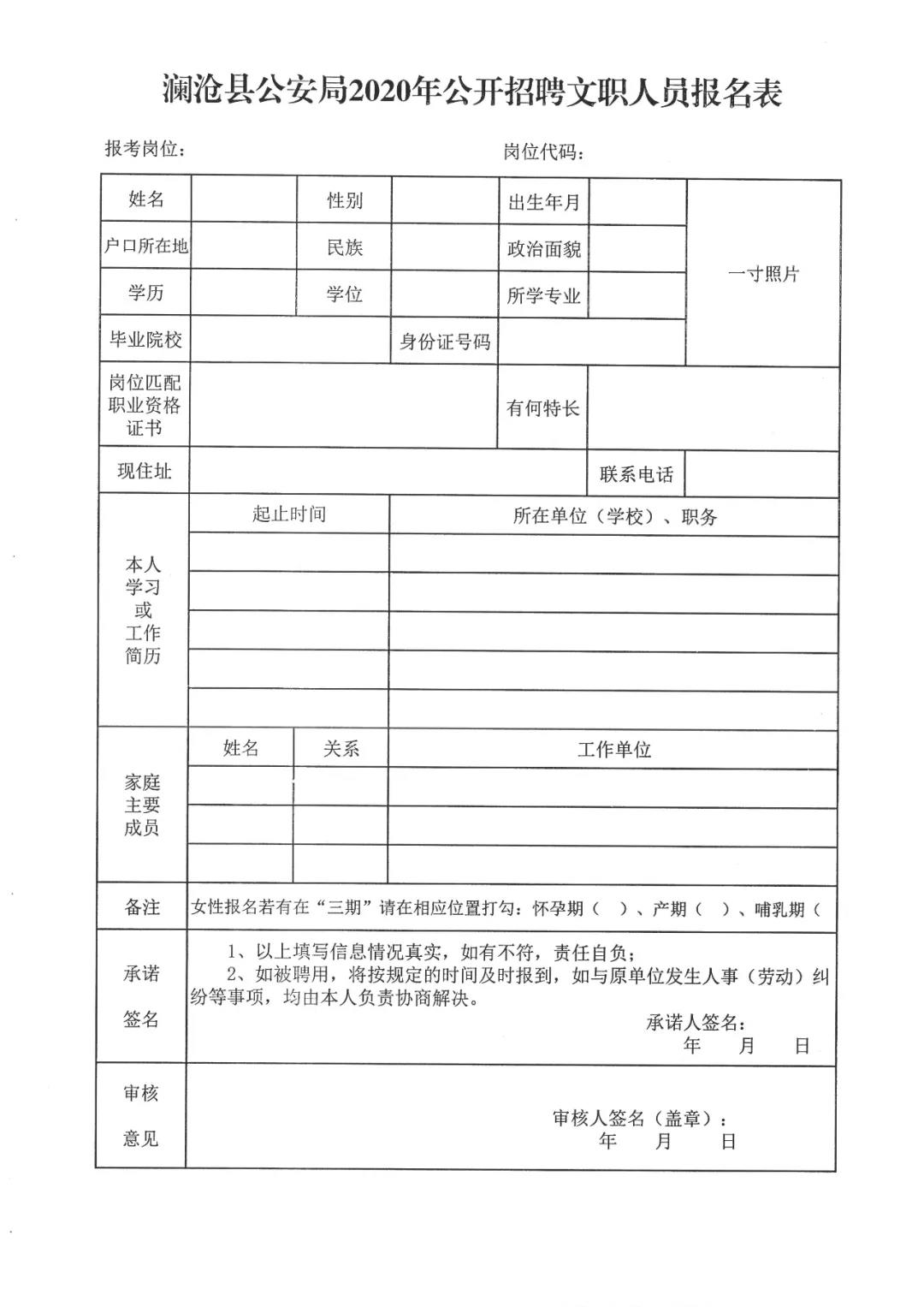 2. 瀾滄縣公安局2020年公開招聘文職人員報名表