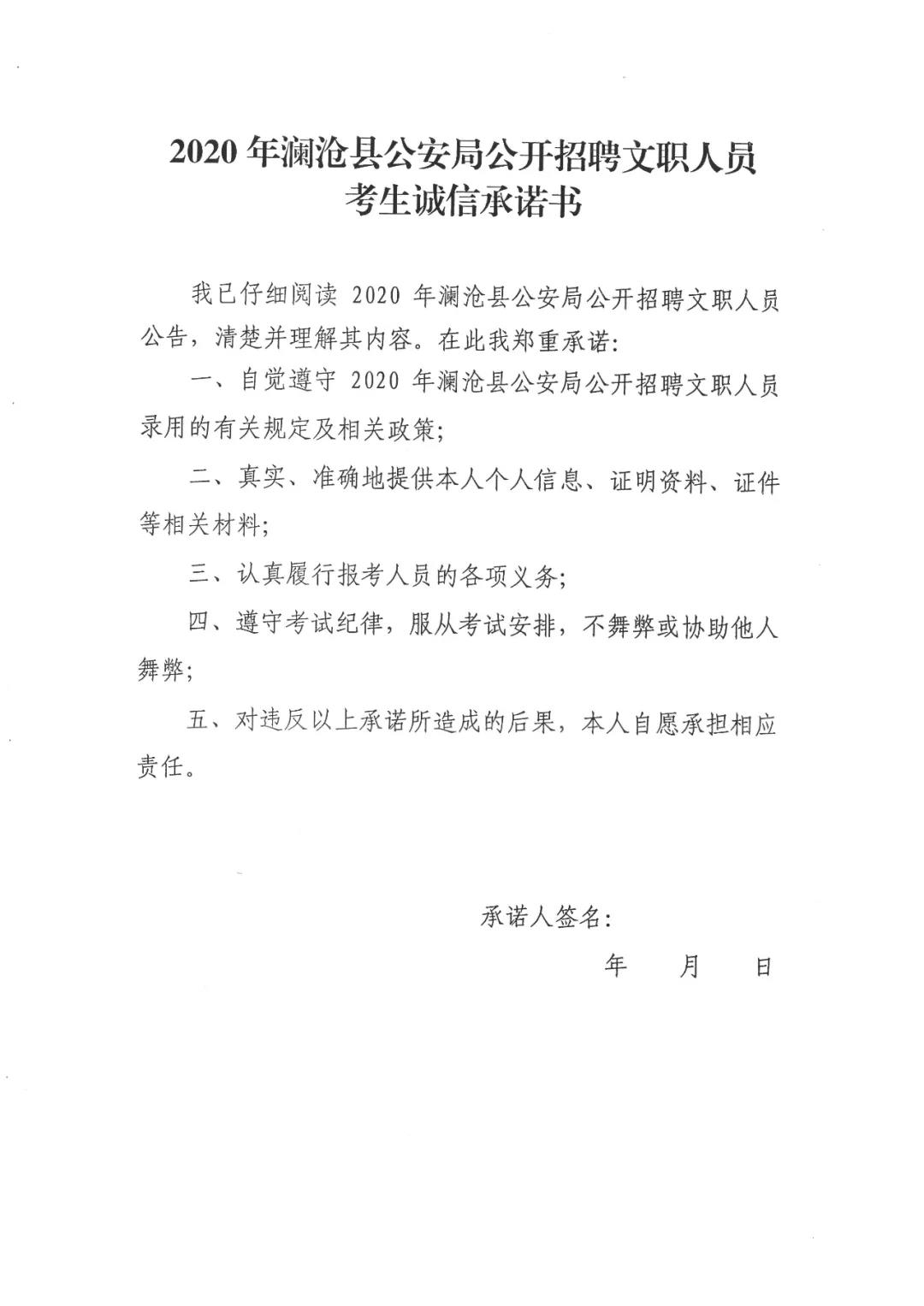 3. 2020年瀾滄縣公安局公開招聘文職人員考生誠信承諾書