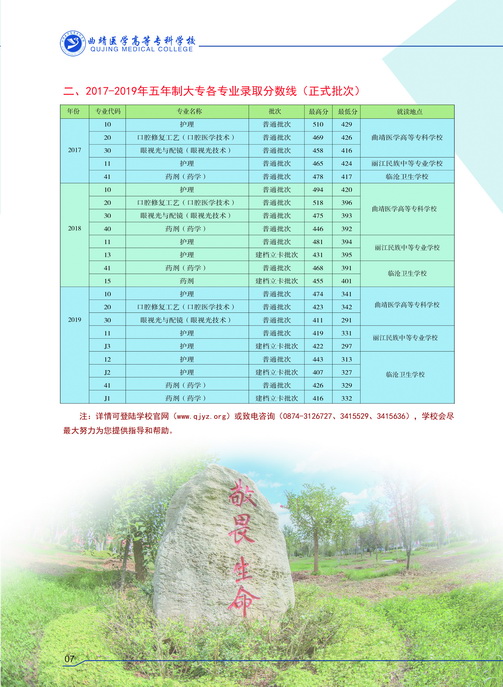 曲靖醫(yī)學(xué)高等專科學(xué)校2017-2019年五年制大專各專業(yè)錄取分?jǐn)?shù)線