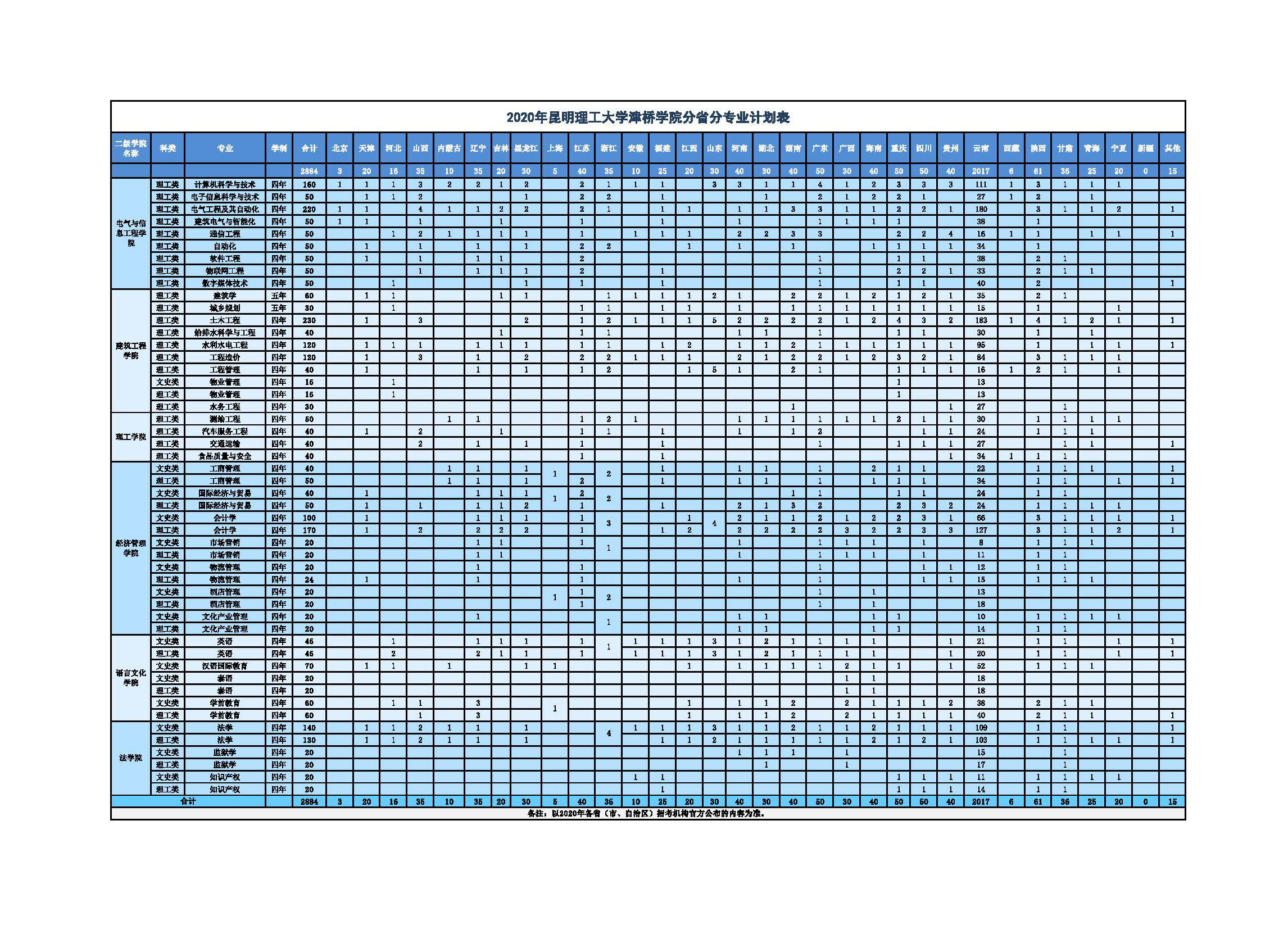 2020年昆明理工大學(xué)津橋?qū)W院分省分專業(yè)計(jì)劃表