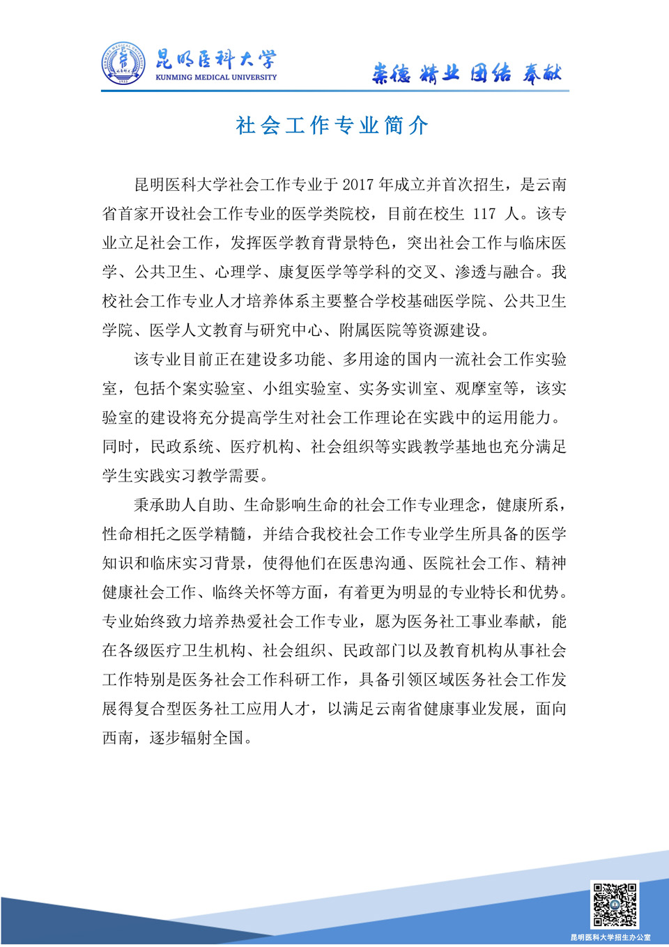昆明醫(yī)科大學(xué)2020年招生專業(yè)介紹--社會工作