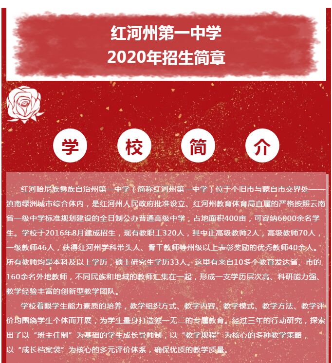 紅河州第一中學2020年招生簡章