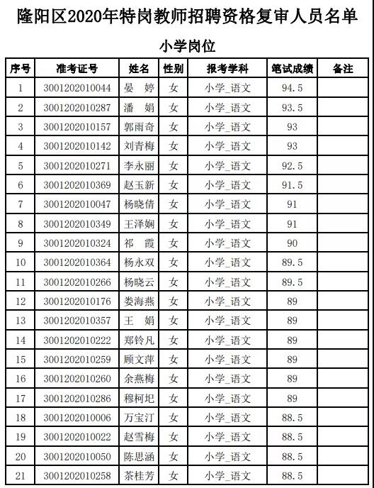 2.隆陽區(qū)2020年特崗教師招聘資格復(fù)審人員名