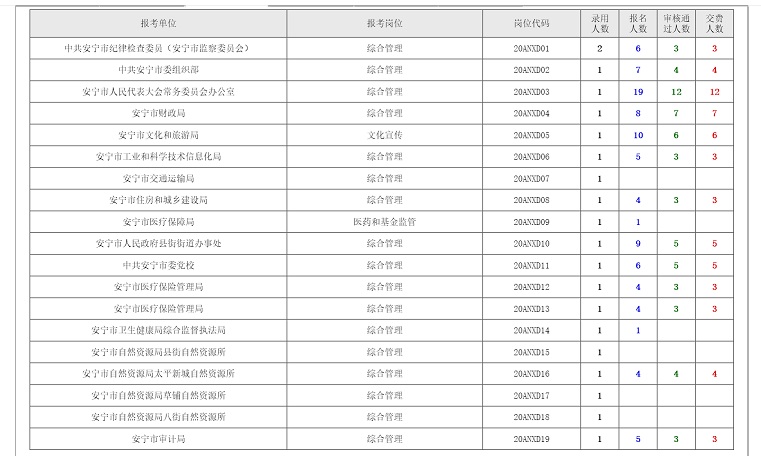 因達(dá)不到公告規(guī)定的開考比例,安寧市交通運輸局綜合管理崗(崗位代碼20ANXD07)取消選調(diào);安寧市醫(yī)療保障局醫(yī)藥和基金監(jiān)管崗(崗位代碼20ANXD09)取消選調(diào);安寧市衛(wèi)生健康局綜合監(jiān)督執(zhí)法局綜合管理崗(崗位代碼20ANXD14)取消選調(diào); 安寧市自然資源局縣街自然資源所綜合管理崗(崗位代碼20ANXD15)取消選調(diào); 安寧市自然資源局草鋪自然資源所綜合管理崗(崗位代碼20ANXD17)取消選調(diào); 安寧市自然資源局八街自然資源所綜合管理崗(崗位代碼20ANXD18)取消選調(diào);削減中共安寧市紀(jì)律檢查委員會(安寧市監(jiān)察委員會)(崗位代碼20ANXD01)1個選調(diào)職位(以上詳見附表)。