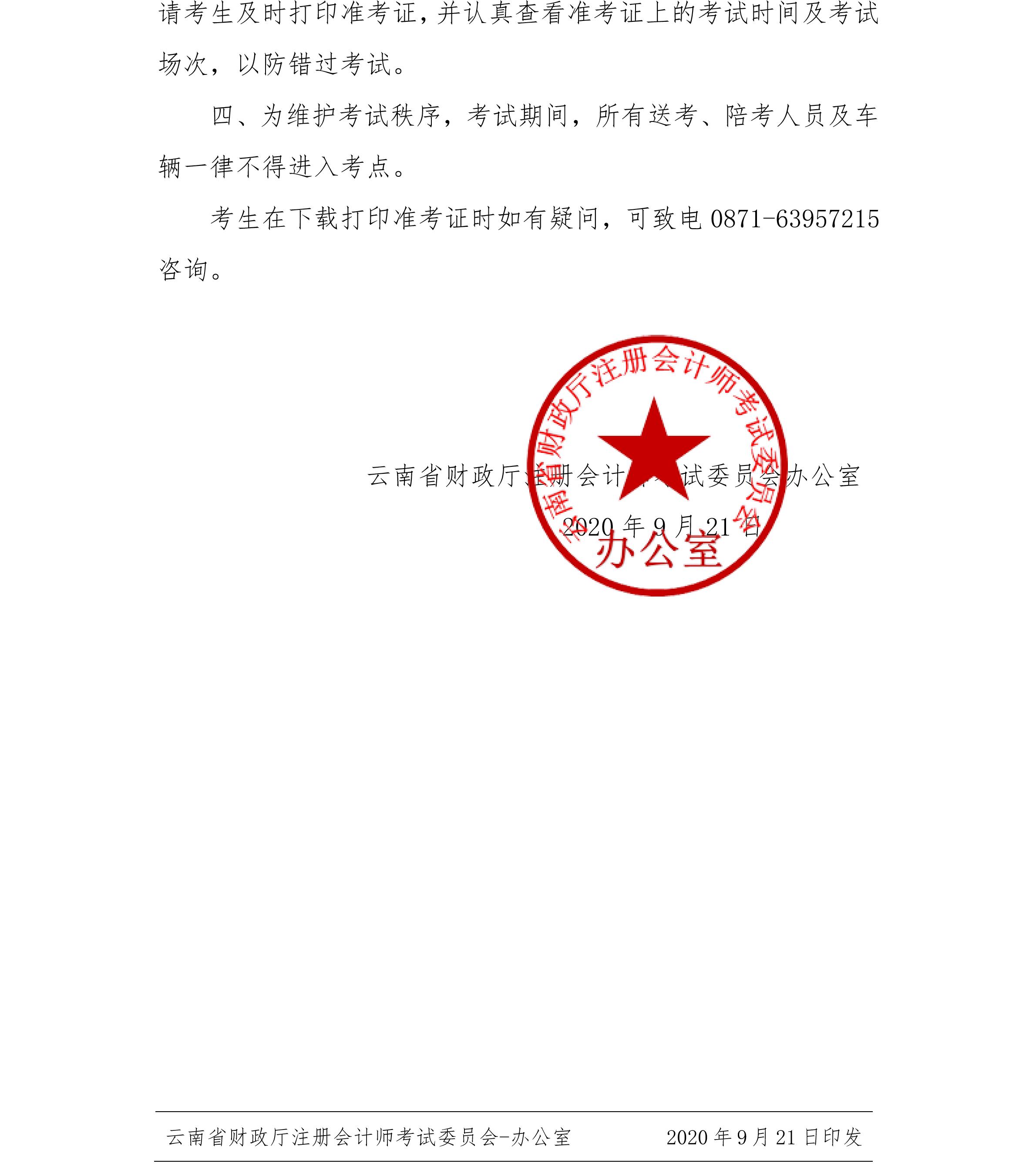 關(guān)于下載打印云南考區(qū)2020年注冊會計(jì)師全國統(tǒng)一考試準(zhǔn)考證的公告.pdf